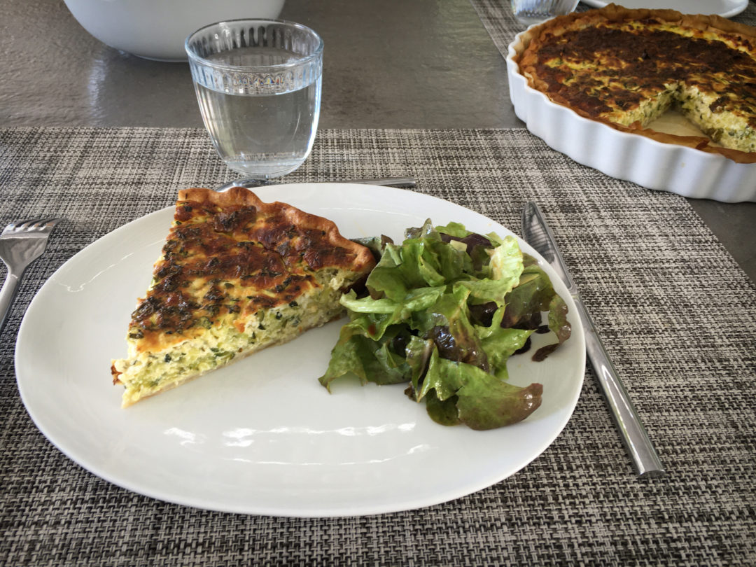 - Égoutter les courgettes râpées en les pressant bien entre vos mains et les placer sur la pâte.