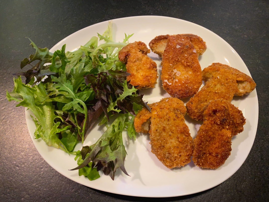 3. Verser la panure sur une assiette et enrober chaque 1/2 cèpes en les tournant plusieurs fois dedans. Appuyer légèrement afin qu’elle adhère bien tout autour.