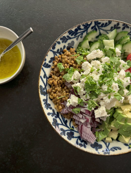 Salade composée n°2 aux lentilles et sauce au miel