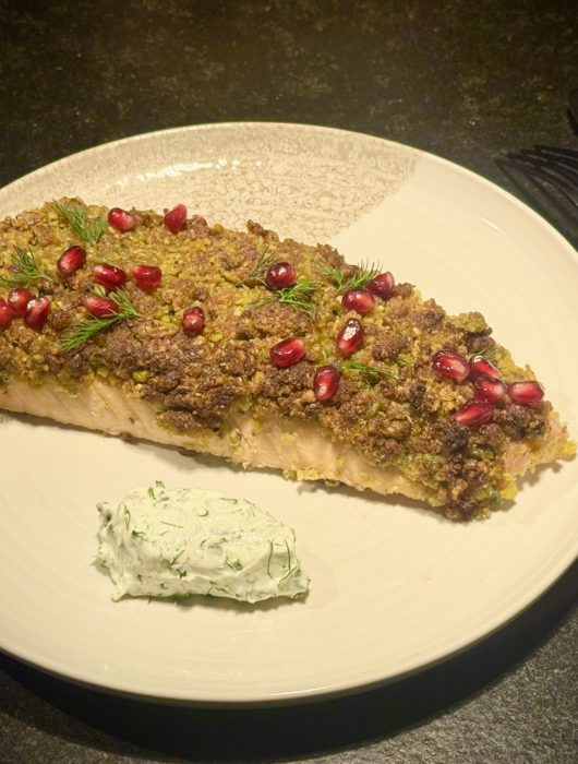 Saumon en croûte de pistache sauce à l’aneth